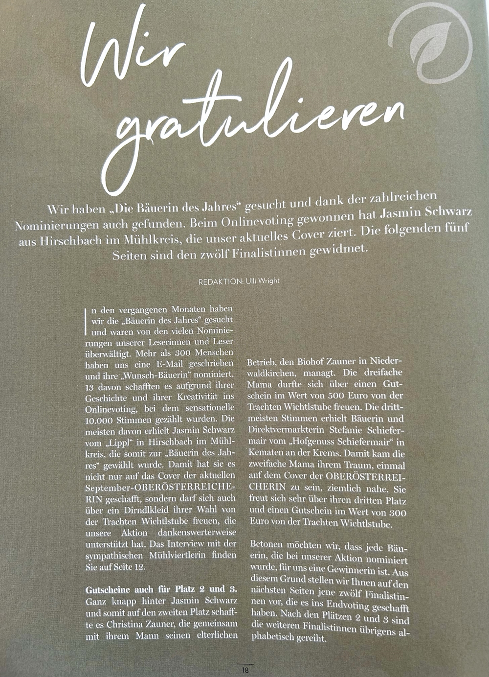 Nominierung zur ‚Bäuerin des Jahres 2024‘ – Die Oberösterreicherin